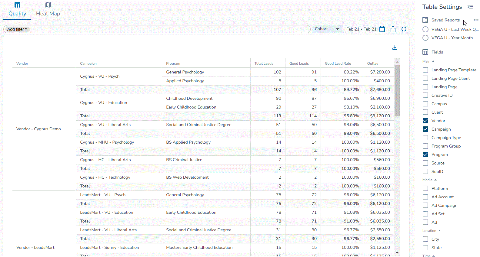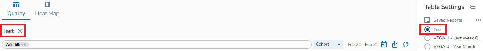 Within VEGA you're able to save your custom Performance table reports and settings for quick reference and access when you need them.