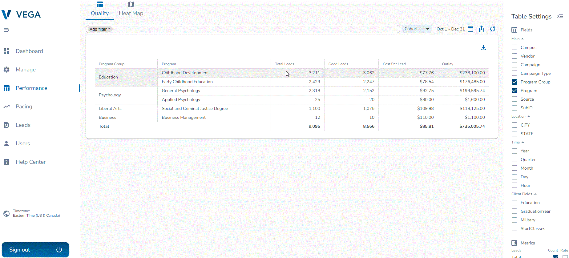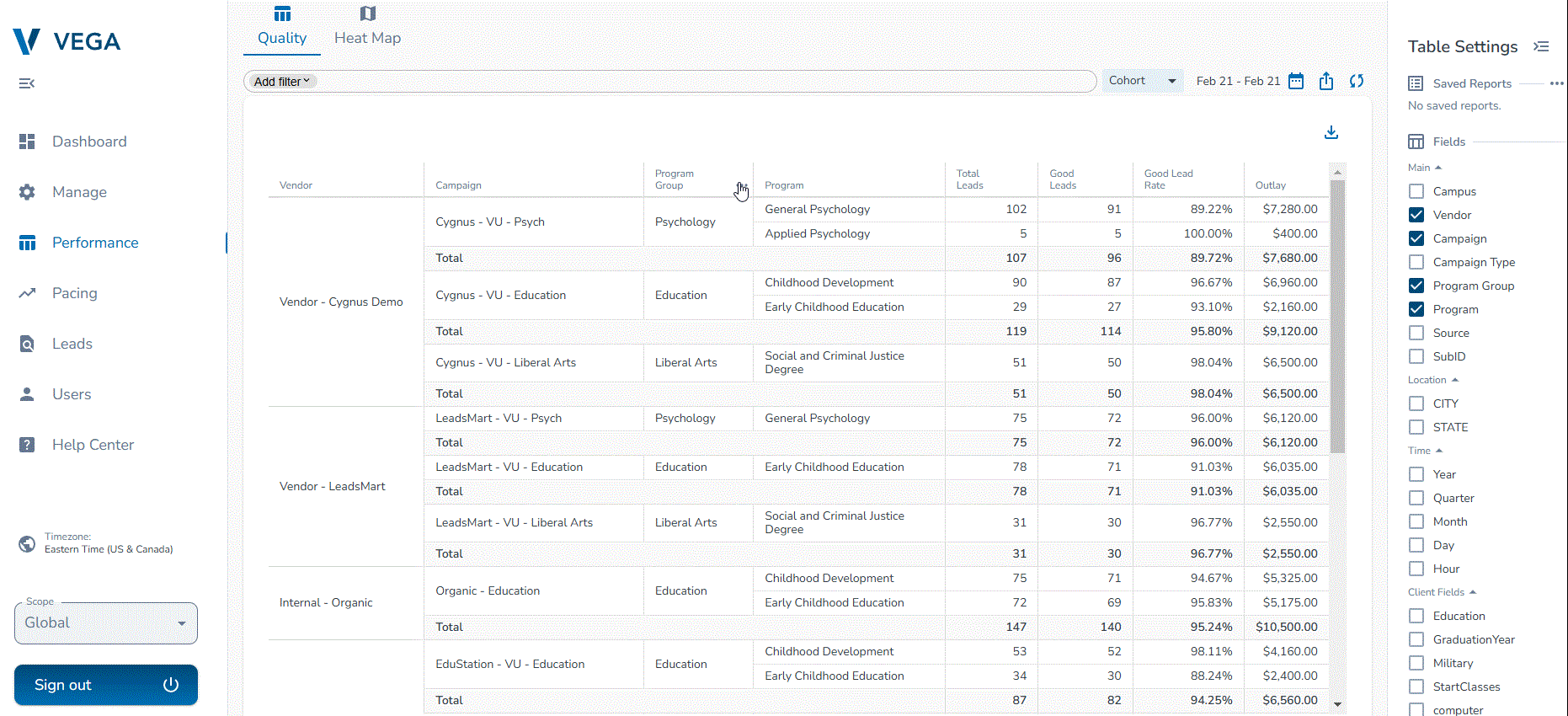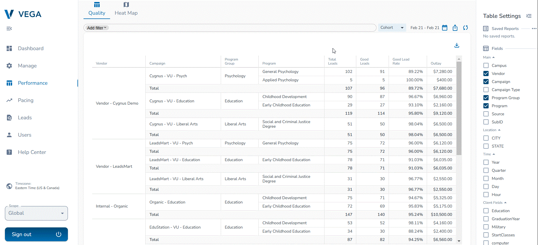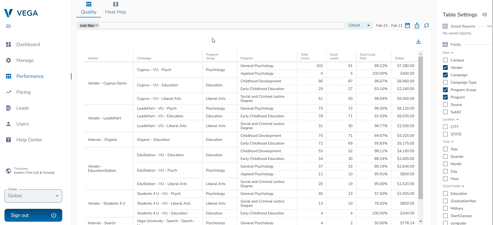 Apply filters to your report for a more granular view into certain aspects of your campaigns: