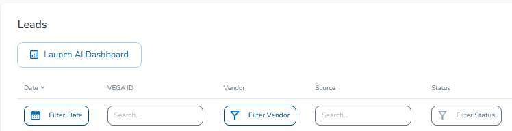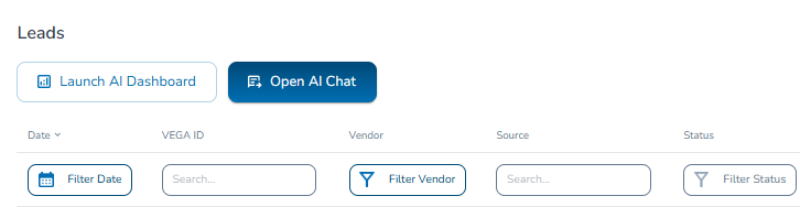 In the Leads table, after selecting your timeframe, click the Launch AI Dashboard button in the top left corner: