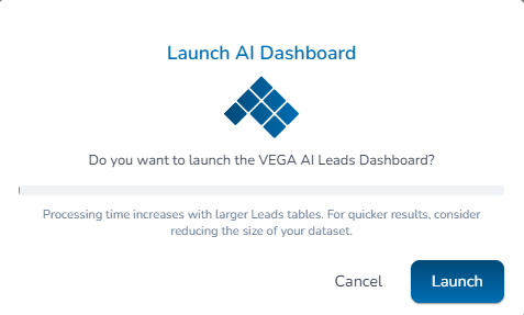 A modal will then be displayed asking you to confirm the Launch, which will load the lead data in your report to the VEGA AI tool: