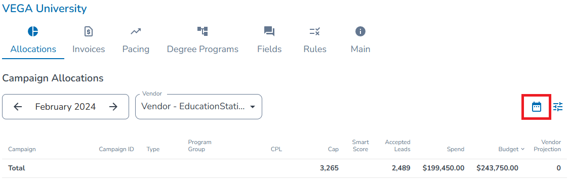 On the Allocations screen you're able to add daily lead caps for individual vendor campaigns or groups of their campaigns after selecting a specific vendor from the Vendor dropdown.
