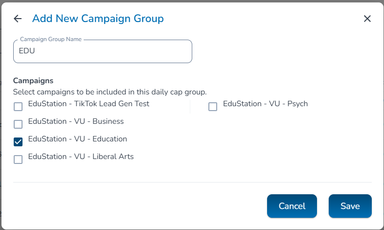 - Daily caps are set on groupings of campaigns (1+ selected campaigns).